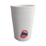 - Jetzt wird jeder Becher einzeln komplett Sahne matt von Hand glasiert und überschüssige Glasur vom Boden abgewischt.